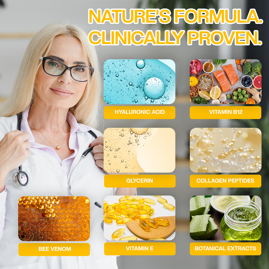 ✅ Stimulates Collagen Renewal Bee venom and peptides trigger the skin’s natural repair response, boosting fibroblast activity to rebuild structural support.